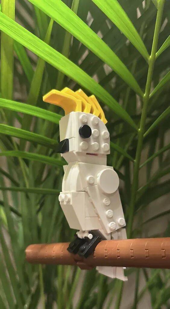 这只精美的葵花鹦鹉,头上醒目的黄色“葵花”,就来自 4 个椅子零件。