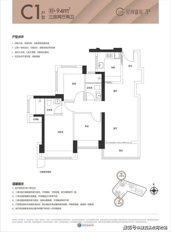本次将推出1栋1/2单元,共364套房源,面积有83-87-89-94㎡的3房2卫,107-113㎡的4房2厅2卫户型,约90%-94%使用率。