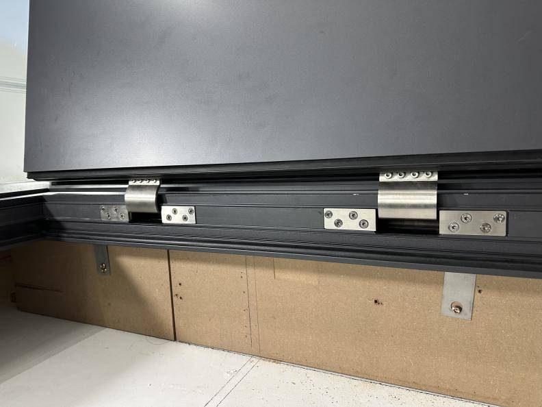 门架更是“下了狠料”:标配2.0厚锌合金全系开糟,已经是行业中高端水准;可选的2.5厚全铝门架(承重位3.6厚),用“铝材质+加厚承重区”的设计,把“轻量”和“超承重”同时拉满——就算门上挂重物、频繁开合,十年后依旧稳如安装第一天。