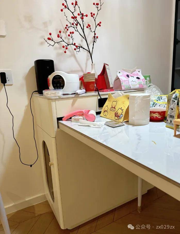 网友@卷饼锅巴:空间小跟风岛台,又笨又重,导致餐桌过小,人多无法就餐,虽然有台面反而成了堆积杂物的借口。如果是单独餐桌还可以自由移动,满足更多人就餐需求。现在后悔显然来不及了。