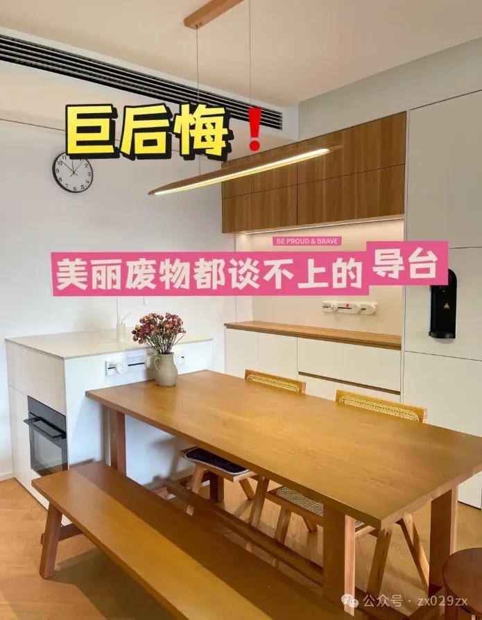 网友@有钱不快活:因为跟风才做了岛台餐桌,入住三个月发现巨坑!第一蒸烤箱太低,每次使用弯腰太难受了,而且因为太低多次差点烫着孩子;第二岛台做了水池太鸡肋,每次放水都溅一地水。感觉除过能看以外,功能没有一个不后悔的。