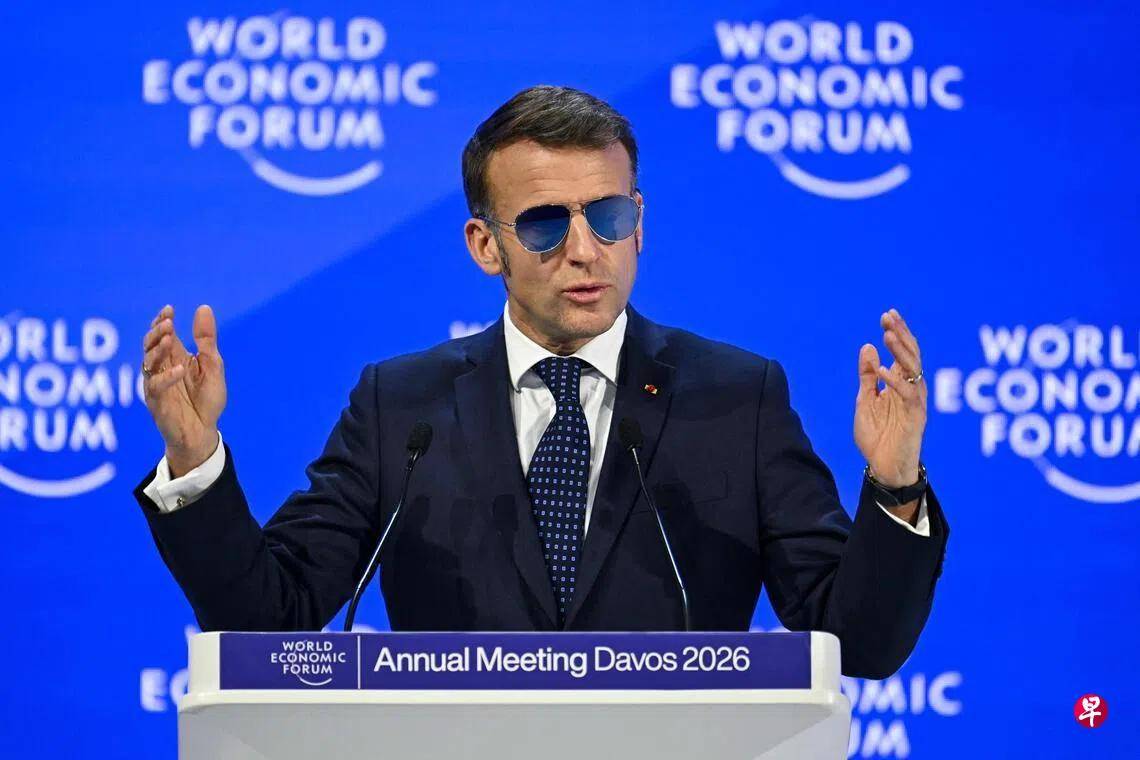 1月20日,达沃斯世界经济论坛,马克龙戴着墨镜出场。