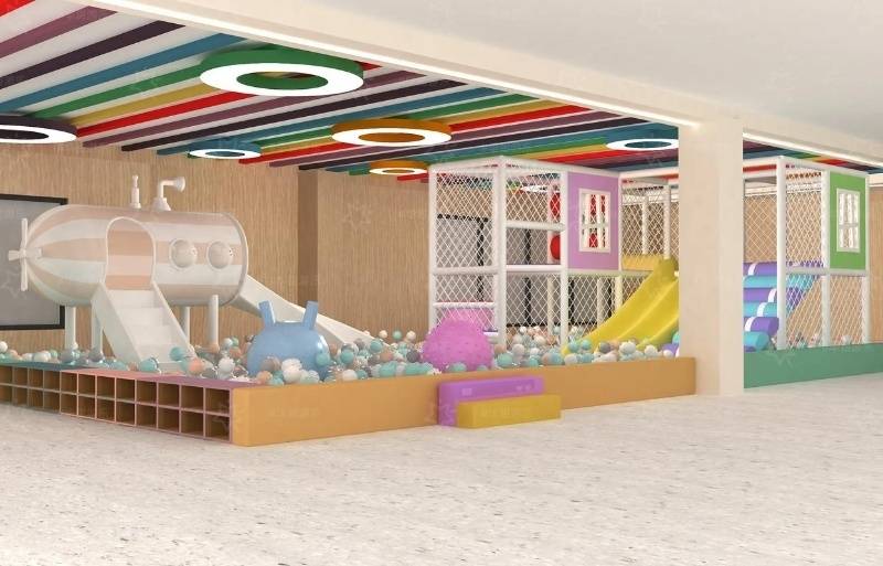 3. 维护性:所有设计考虑后期清洁和维护,如海洋球池底部设排水孔,沙池配防尘罩,布艺装饰选可拆洗款,地面接缝≤2mm避免积灰。