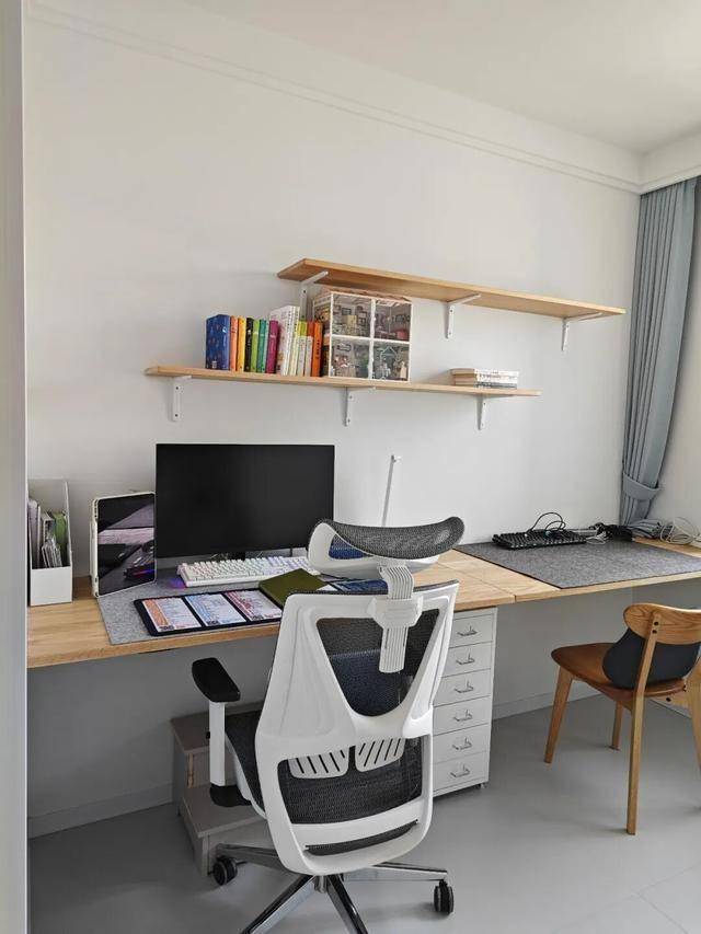 在书桌没有背板的情况下,日常工作学习时,白色的墙面很容易被我们踢脏,极大增加了家务量。