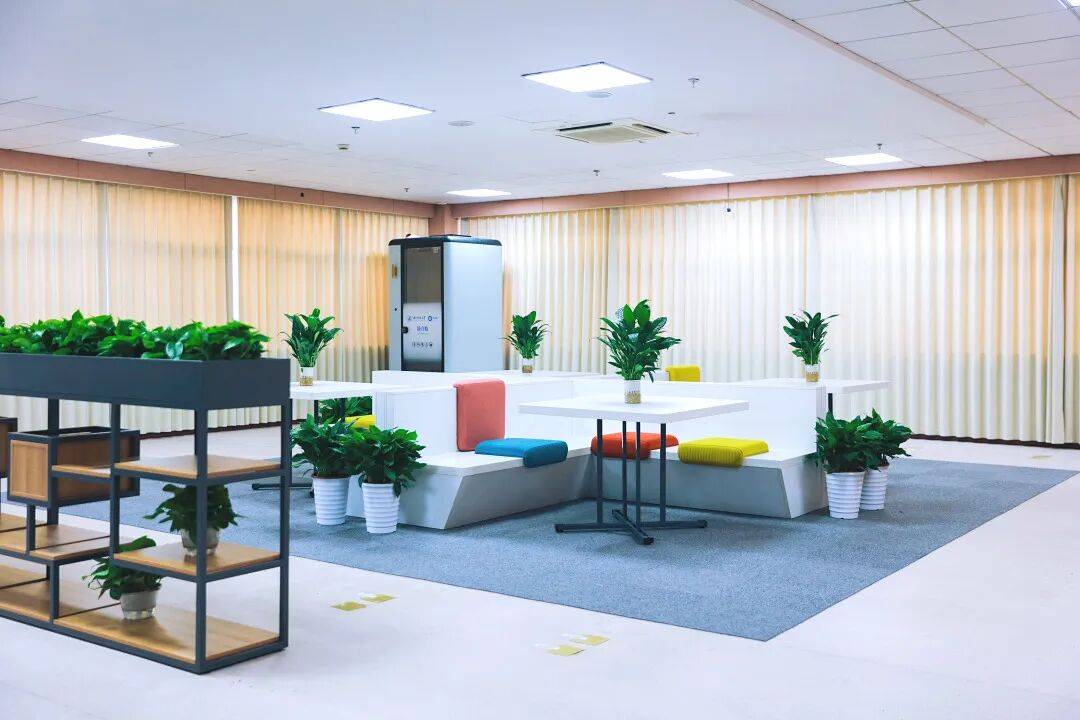 四组舒适的沙发卡座,搭配丰富的绿植和方桌,这里光线柔和,氛围轻松,配备多彩的可移动坐垫,让学习与思考在惬意中自然流淌。