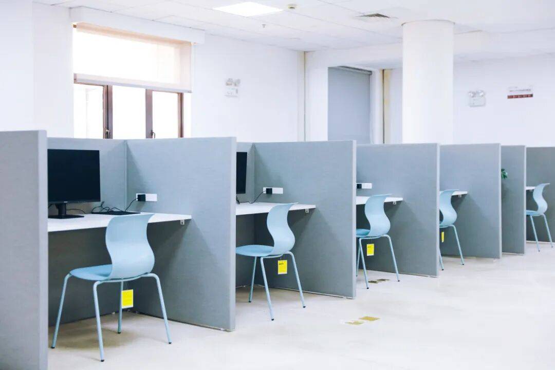 全新打造的屏显区,每个座位都配备三面环绕围挡,为你构筑了一处沉浸学习的专属领地。每个座位均配置了显示器,支持连接个人笔记本电脑,实现双屏高效办公与学习。此区域座位近期将纳入图书馆座位预约系统,敬请关注。