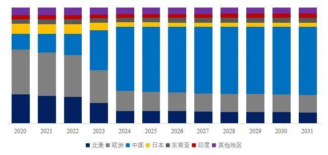 图. 全球全嵌冰箱规模,主要销售地区份额(按销售额)