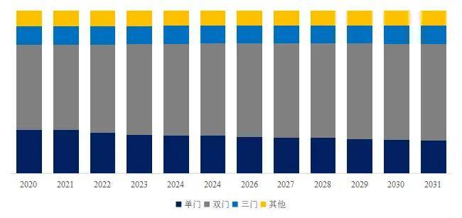 就产品类型而言,目前双门是最主要的细分产品,占据大约56.4%的份额。