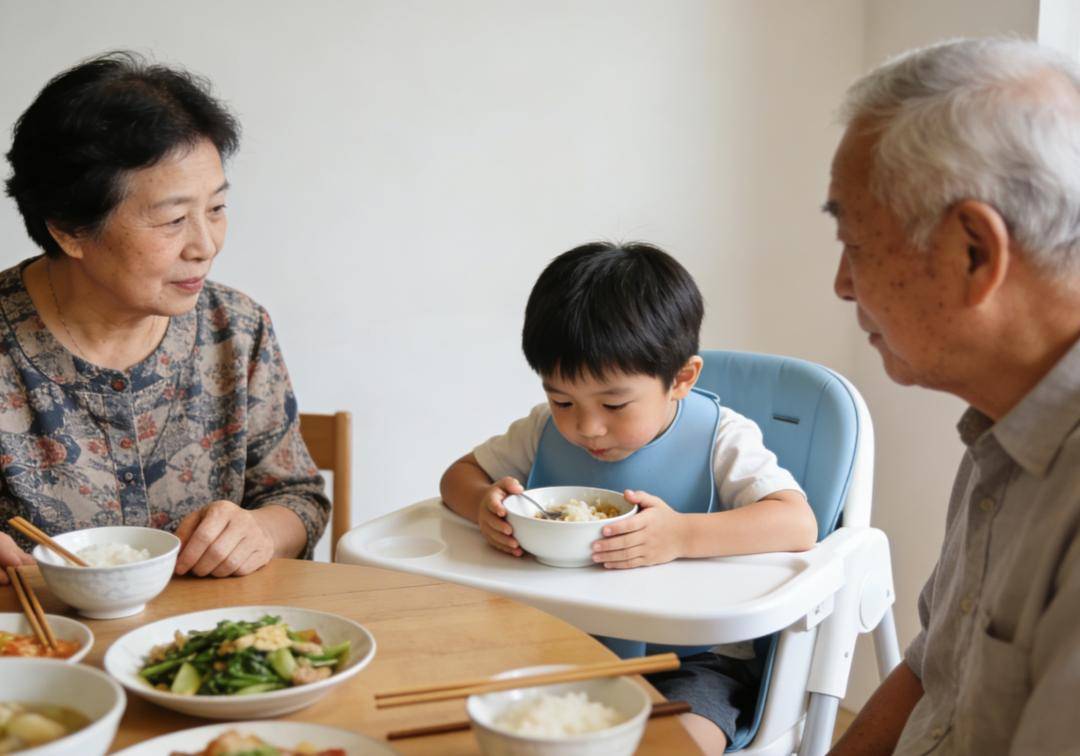 不必刻意说教,吃饭时让孩子参与摆碗筷,不浪费一粒米。