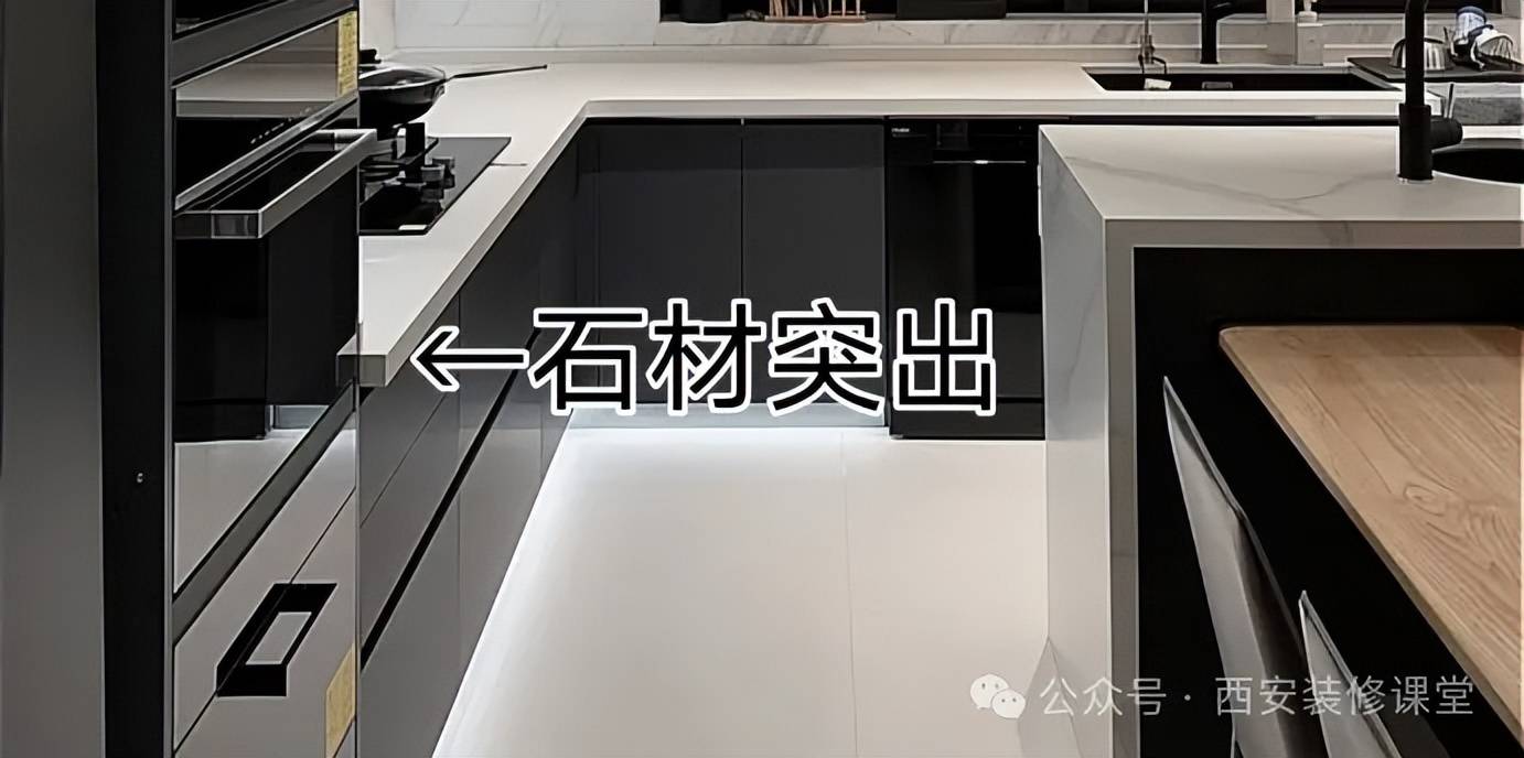 104.橱柜地柜与高柜衔接,一定注意石材不要突出,与高柜柜门一定要平齐