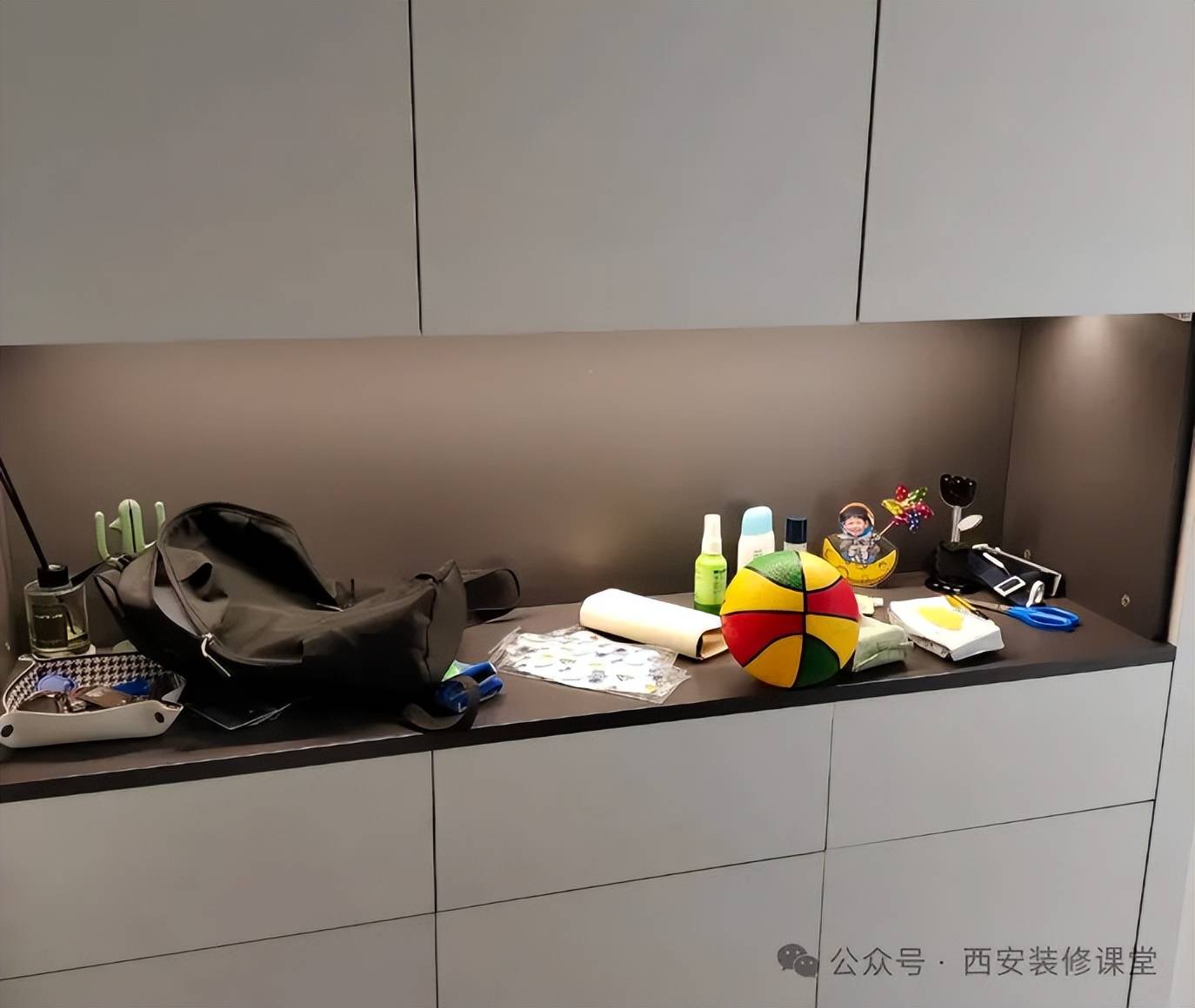 7.鞋柜不要做大面积开放格,后期不放东西,全部堆积杂物,还牺牲了鞋柜的收纳空间。