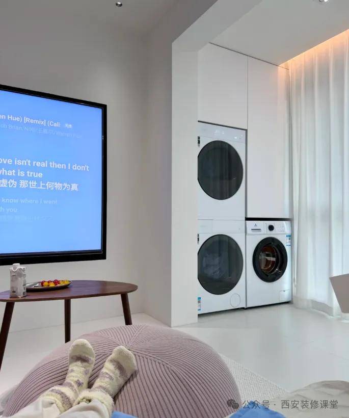 176.阳台如果有烘干机,小件衣服晾晒的话,可以做侧面晾衣架,空间大也可以直接在阳台一边分割独立的洗衣间