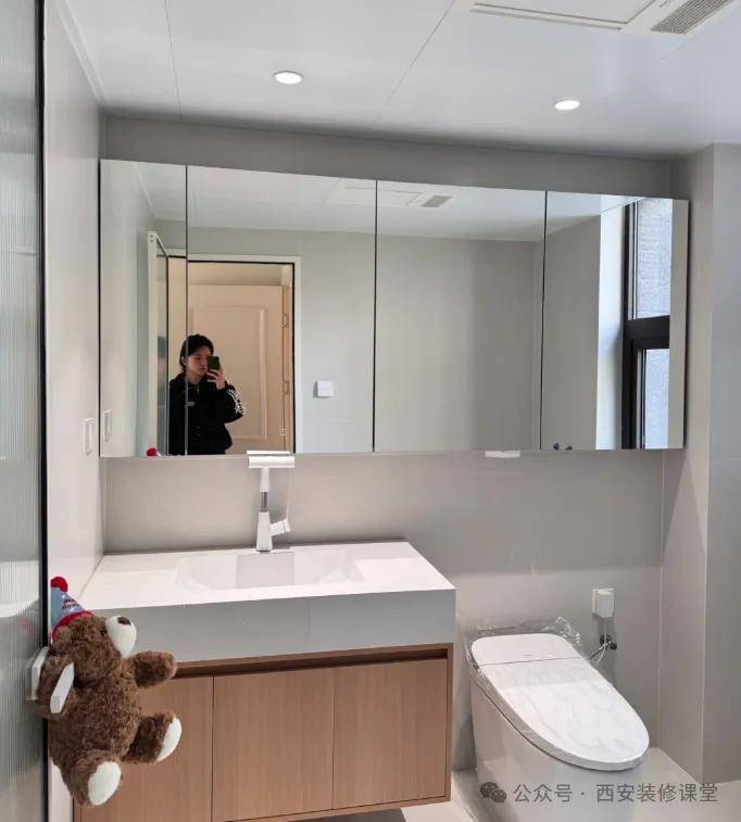 149.卫生间不要跟风做墙排下水,需要满足背后是承重墙,否则用不多久浴柜可能脱落;如果浴柜外置的话直接落地定制最实惠;没有干湿分离直接购买金属浴柜,木质浴柜用不了多久