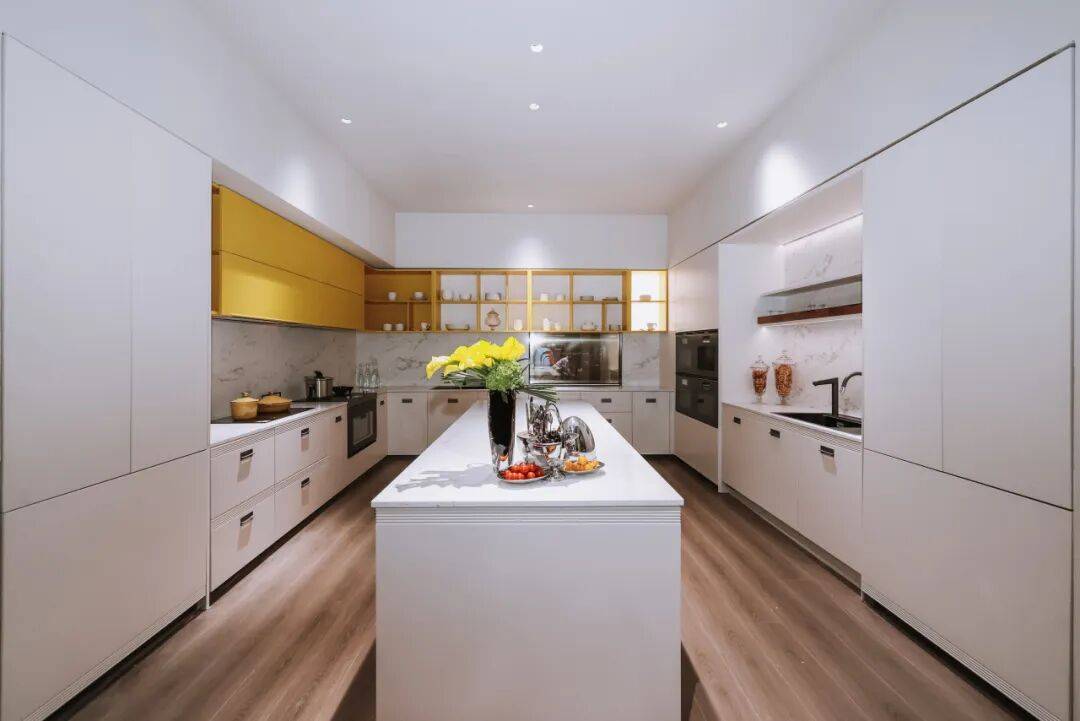 专业厨房,则将商业效率压缩进家。每一条动线都经过精确计算,热区与冷区分工明确,背柜冷区管理严密,电器体系完整协作。专业厨房不仅是烹饪场所,更是住宅功能的实验场——它将家庭生活的专业效率与从容优雅兼收并蓄,让未来生活方式的可能性在空间中被预演。