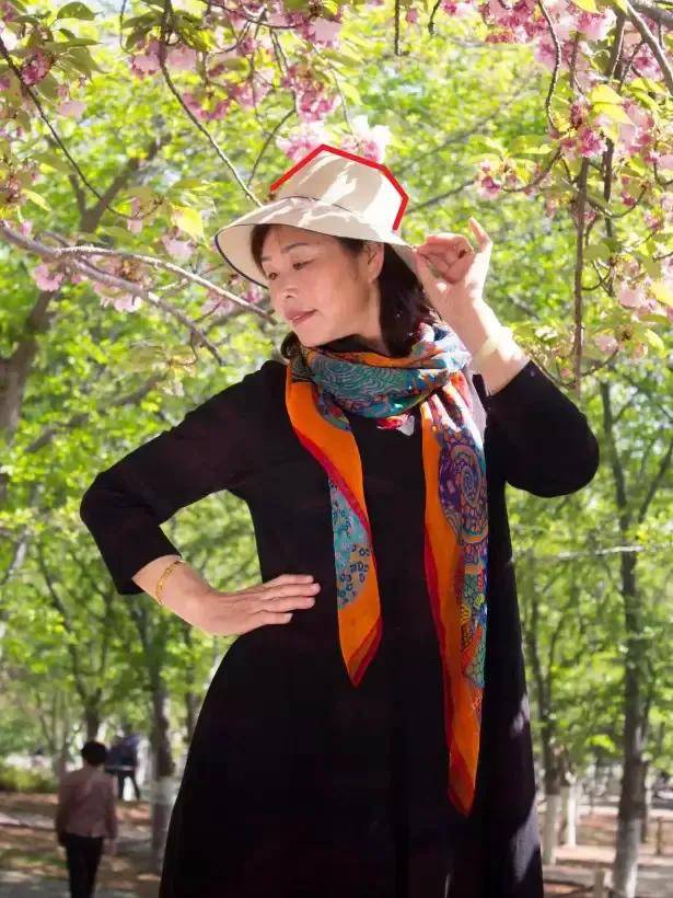 像上面图中的素人戴的紫色帽子,颜色怪鲜艳,戴在头上太抢镜,同时款式设计也很夸张,并不符合中老年女性。