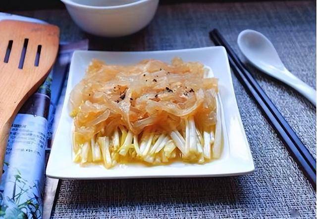 做法:1、海蜇洗净,清水浸泡并多换几次水,去掉过多盐份,切成条;