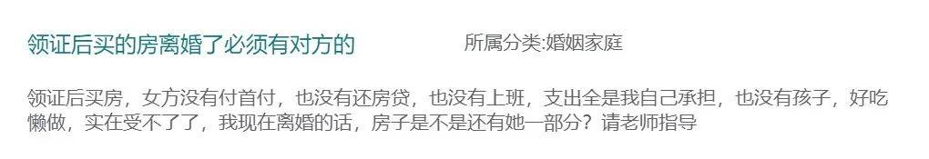 结婚后我偿还了建房子的外债,现... 付出没有换来真心 生病也被恶语相向 如今你要离婚 还想让我空手离开? 1 Q1 结婚时女方花费1...