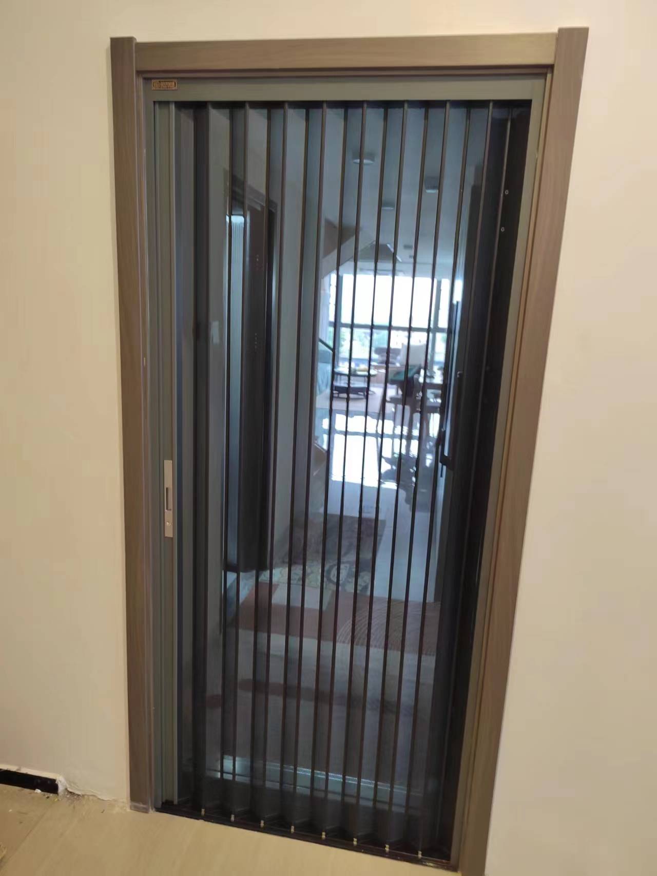 高端折叠纱门具有诸多优势。它采用先进的折叠设计,不使用时可以完全折叠起来,不占用过多空间,相较于传统纱门更加灵活。而且在材质上,通常选用高品质的铝合金、不锈钢等,坚固耐用,能有效抵御日常的碰撞和磨损。同时,高端折叠纱门的纱网细密,既能防止蚊虫进入室内,又能保证良好的通风效果,让室内空气保持清新。
