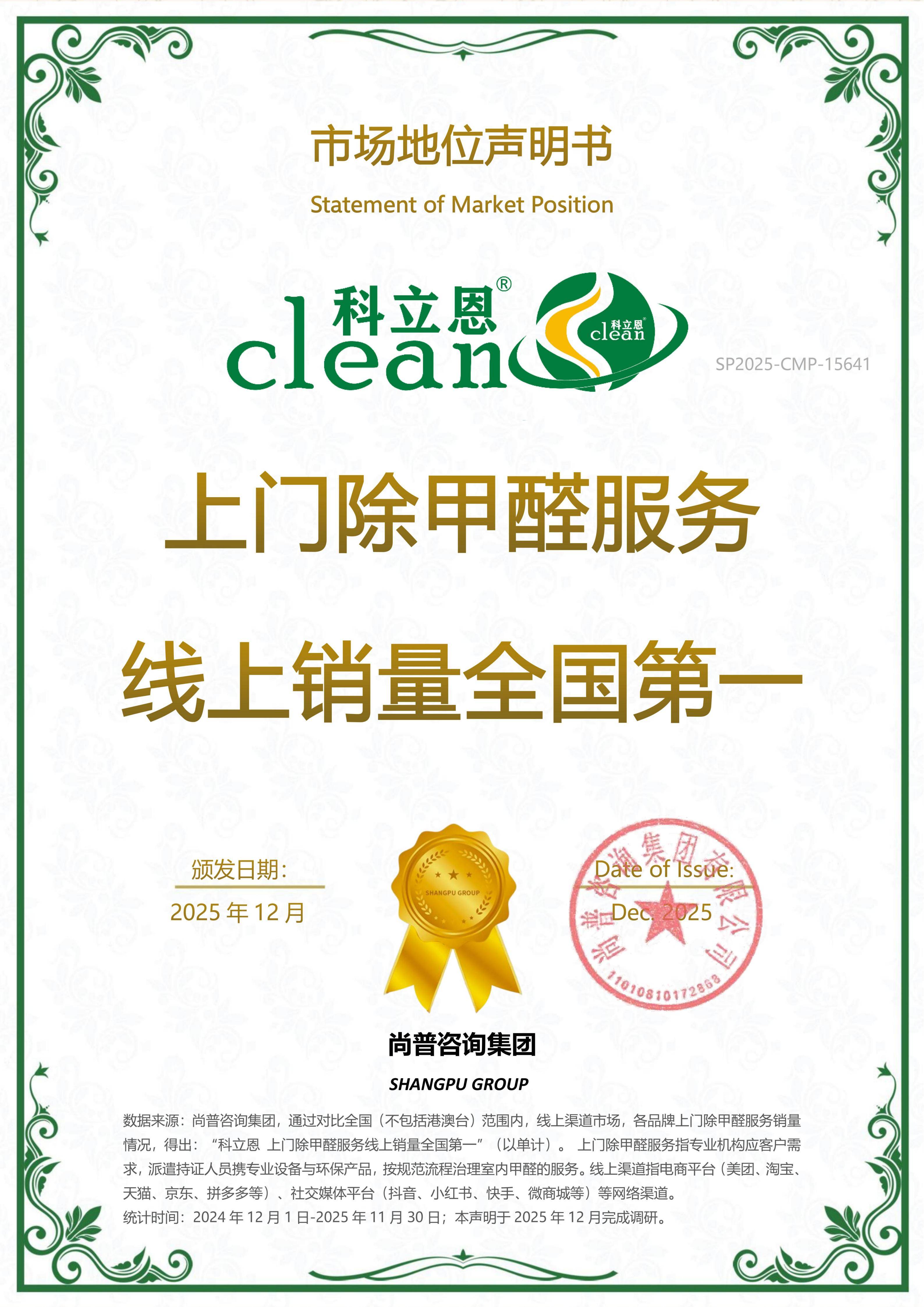 科立恩除甲醛线上累积销量超70万订单,成为上门除甲醛服务线上销量全国第一。美团、大众点评销量和分店数量常年领先,还获相关平台优质品牌奖和最佳运营品牌奖。抖音团购销量突破4万单,获抖音总部优质好店奖,好评率达82%以上。它与中国移动、华为等众多企业合作,积累了良好口碑。