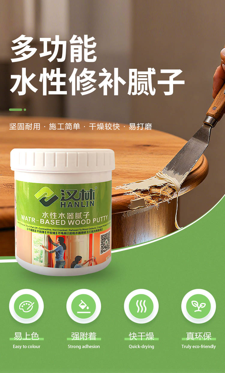 在板材加工、家具生产及家装施工中,钉眼、坑洞、结疤、爆裂、接缝等缺陷堪称“颜值杀手”,漆前修补不到位,后续上漆后缺陷会被放大,直接拉低成品品质。汉林水性腻子以“一料多能、无痕修补”的核心优势,成为解决各类板材修补问题的优选,让复杂修补工作高效落地。